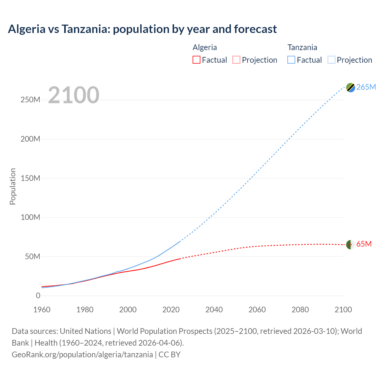 Algeria vs Tanzania: population by year and forecast