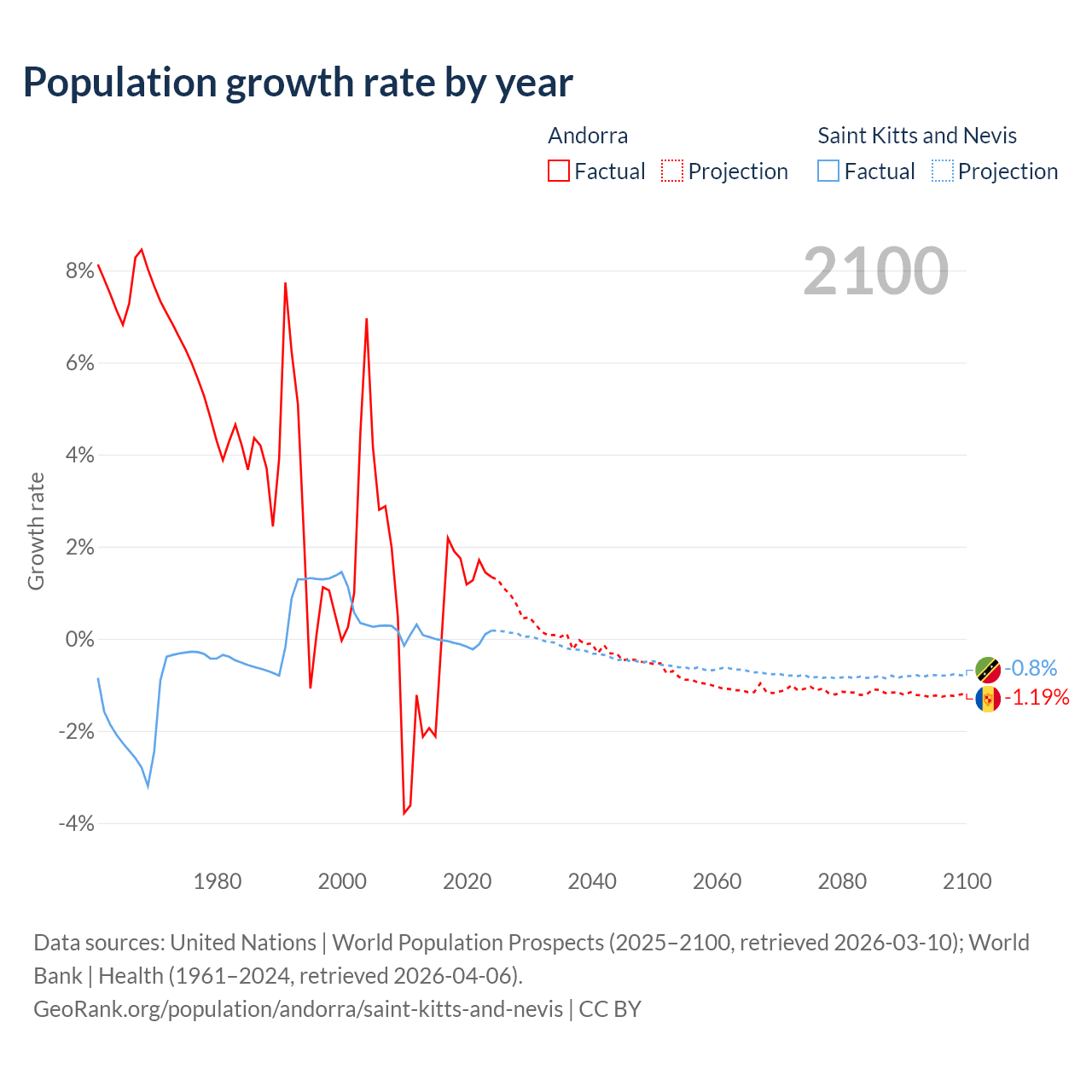 Andorra vs Saint Kitts and Nevis: population by year and forecast