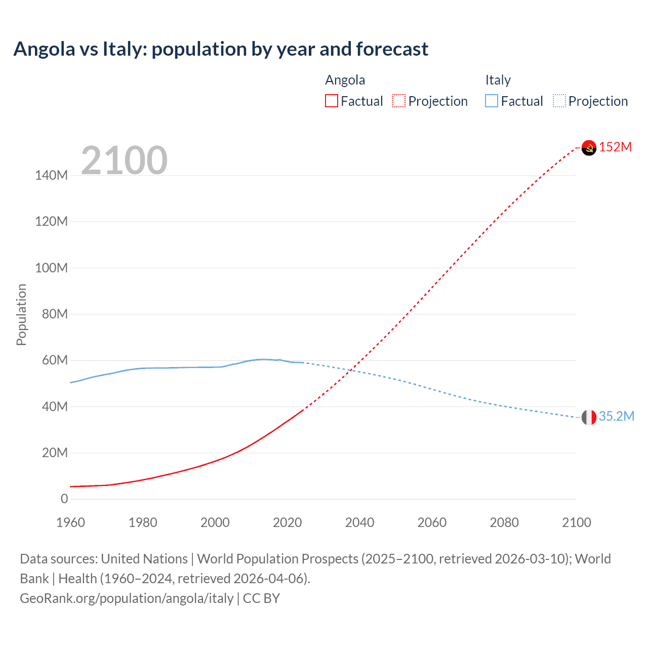 Population differences between Angola and Italy