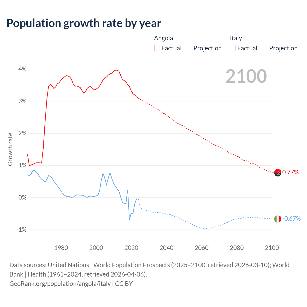 Data sources: World Bank | Health (1960–2024, retrieved 2026-04-06); United Nations | World Population Prospects (1960–2026, retrieved 2026-03-10); U.S. Census Bureau (1960–2025, retrieved 2026-02-08); Central Intelligence Agency (CIA) (2000–2019, retrieved 2026-02-20).