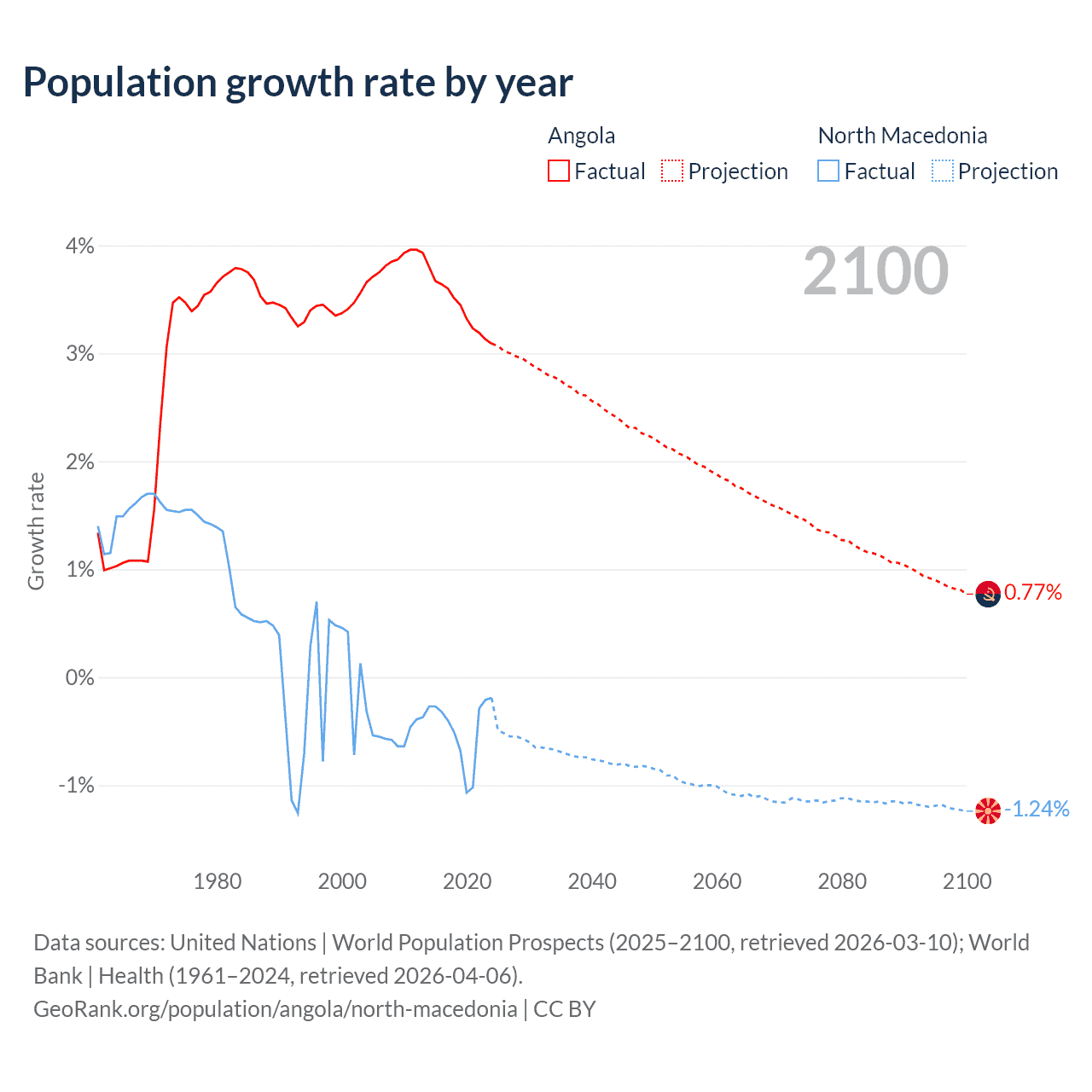 Angola vs North Macedonia: population by year and forecast