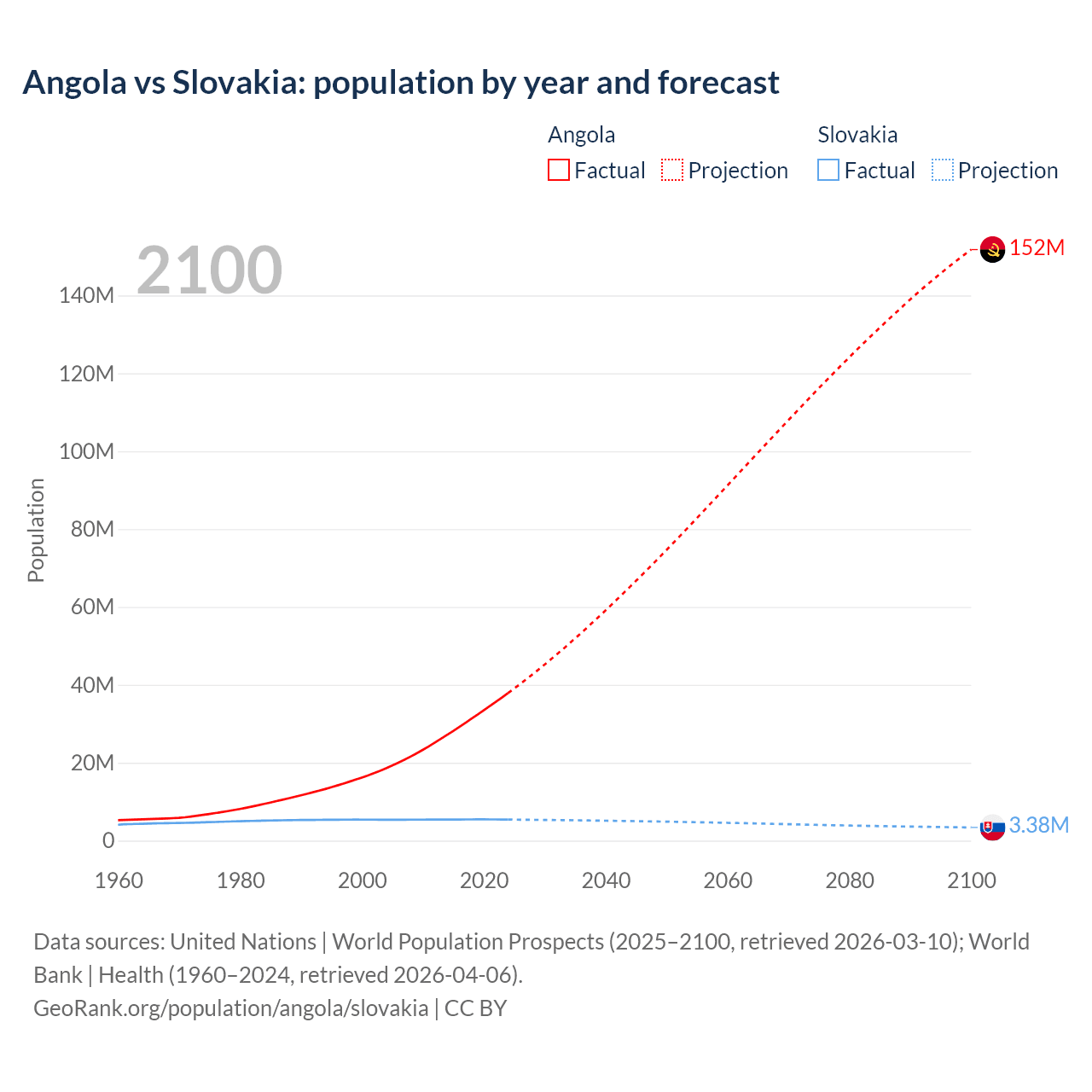 Angola vs Slovakia: population by year and forecast