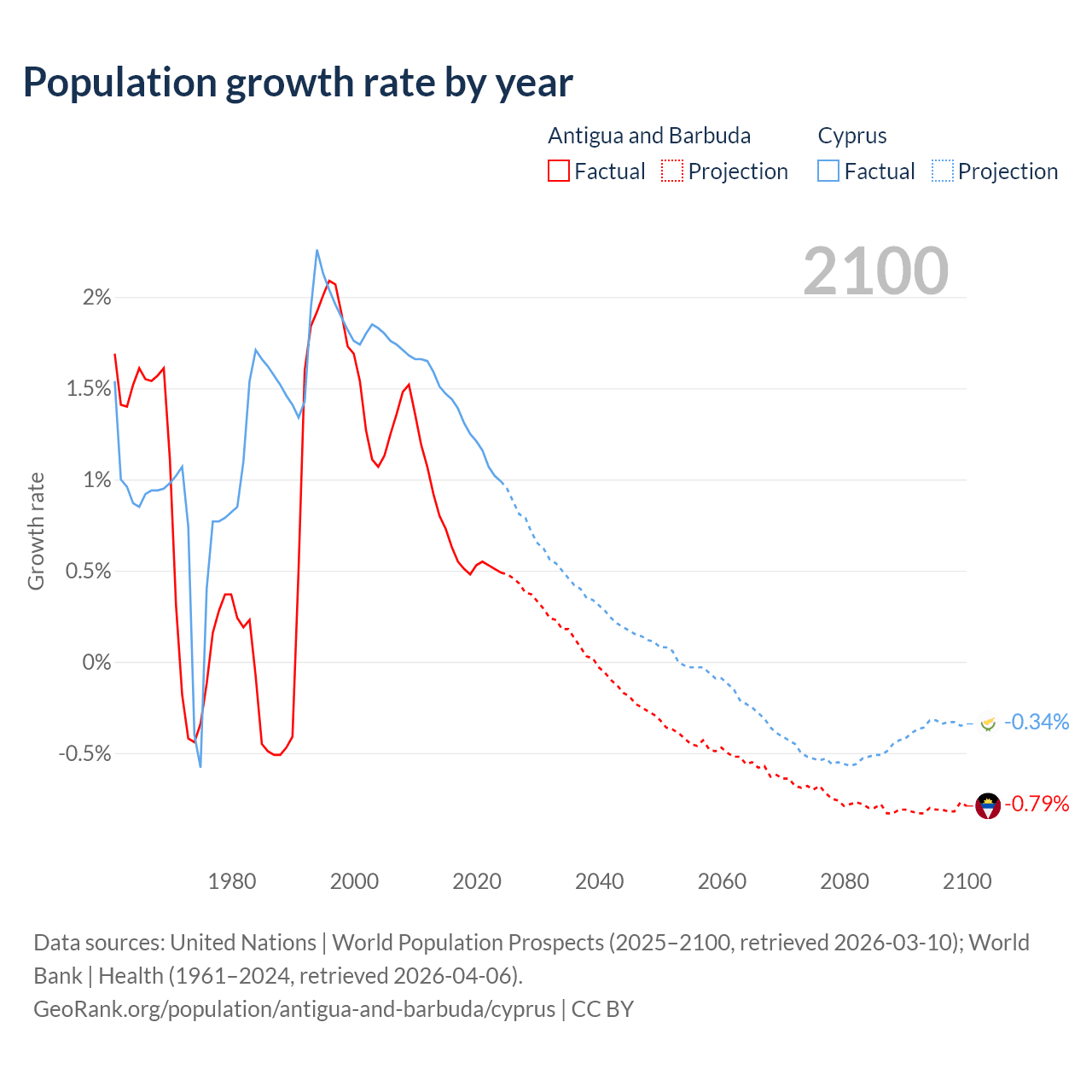Antigua and Barbuda vs Cyprus: population by year and forecast