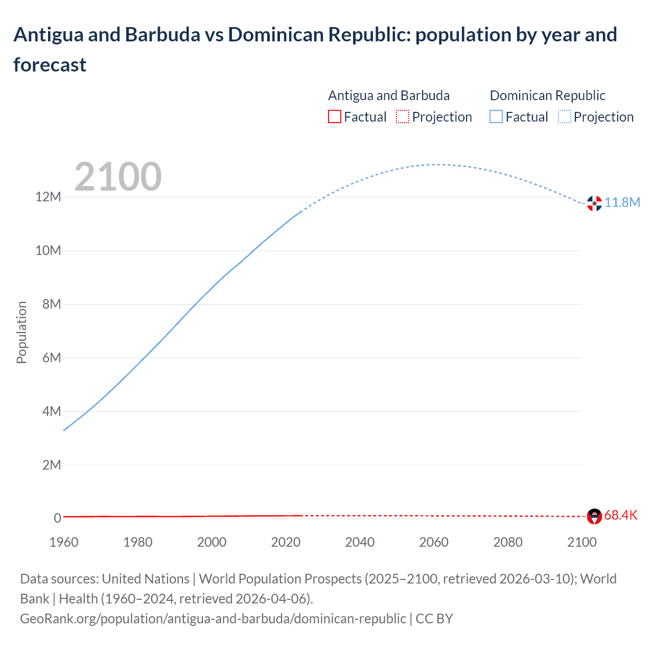 Antigua and Barbuda vs Dominican Republic: population by year and forecast