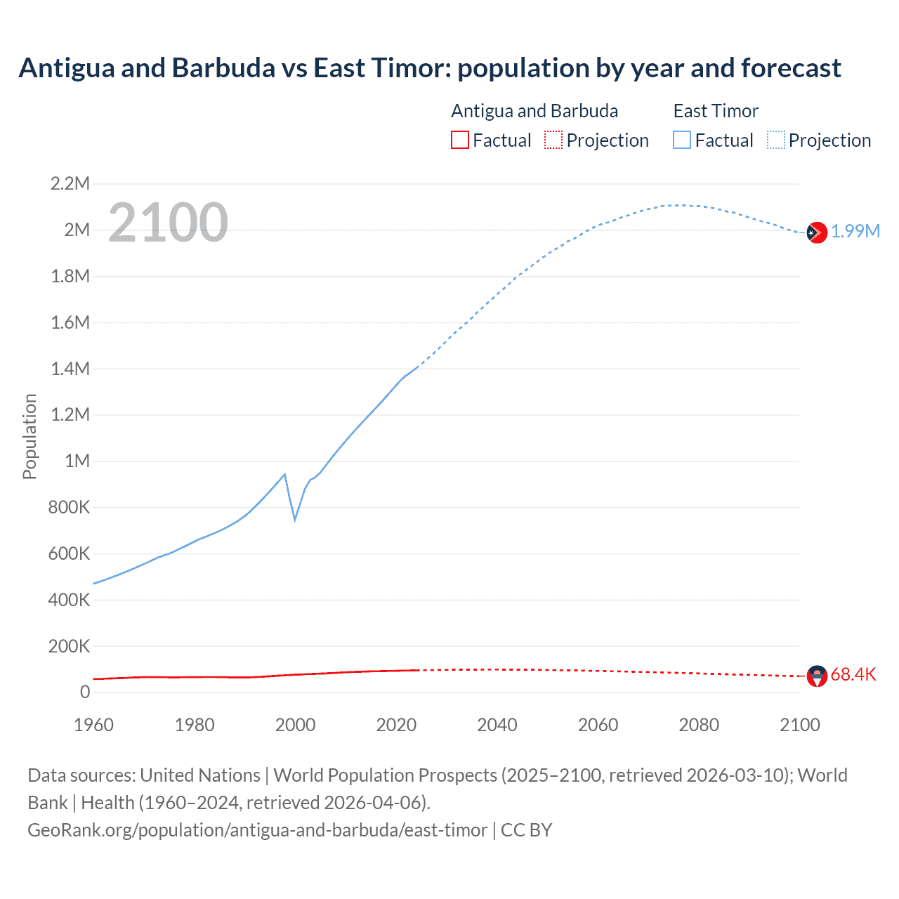 Antigua and Barbuda vs East Timor: population by year and forecast