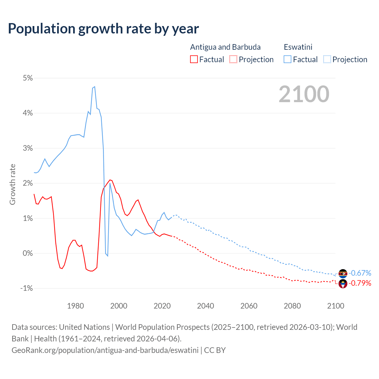 Antigua and Barbuda vs Eswatini: population by year and forecast