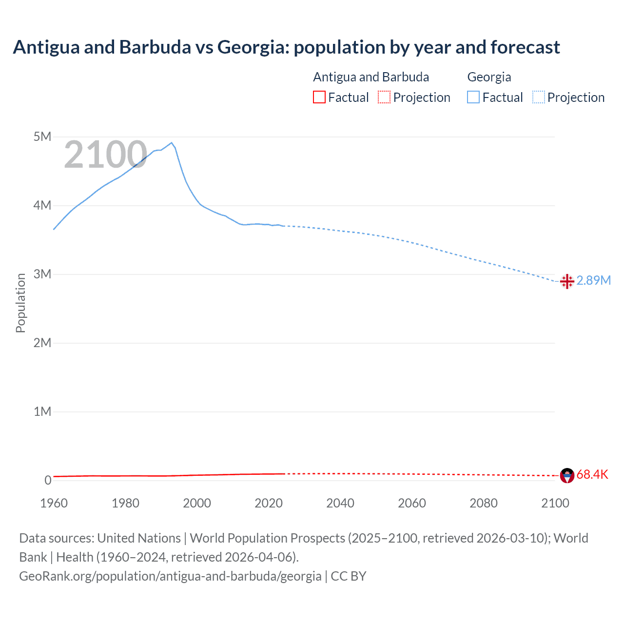 Antigua and Barbuda vs Georgia: population by year and forecast