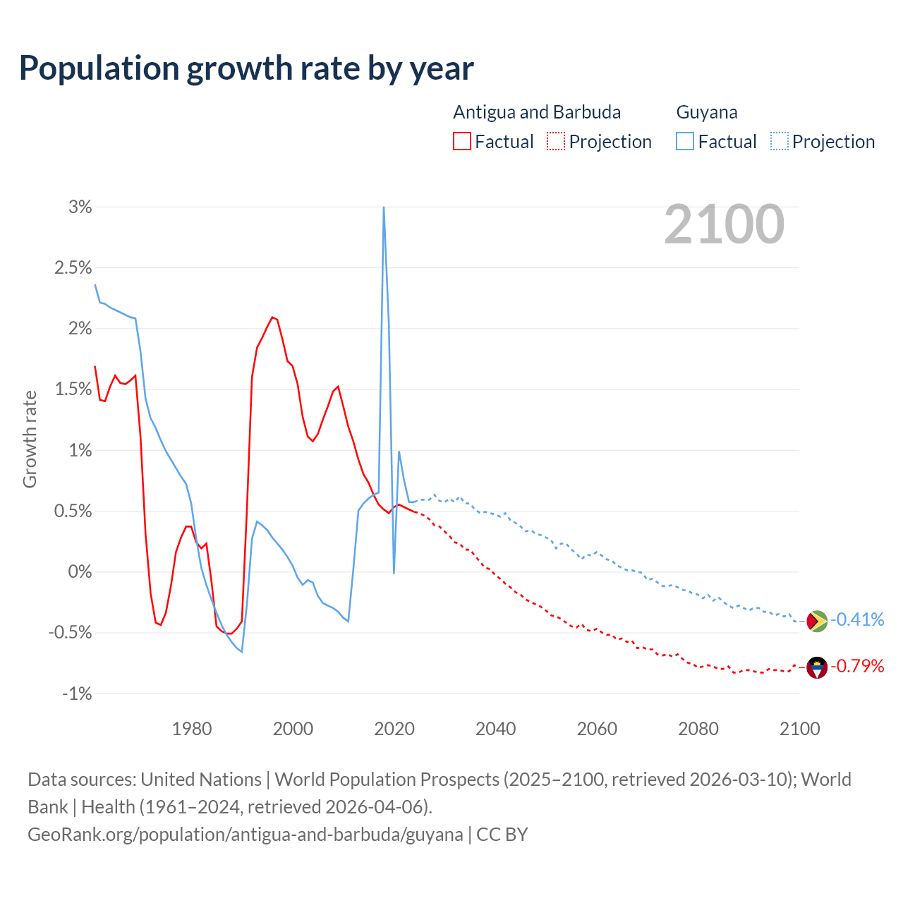 Antigua and Barbuda vs Guyana: population by year and forecast