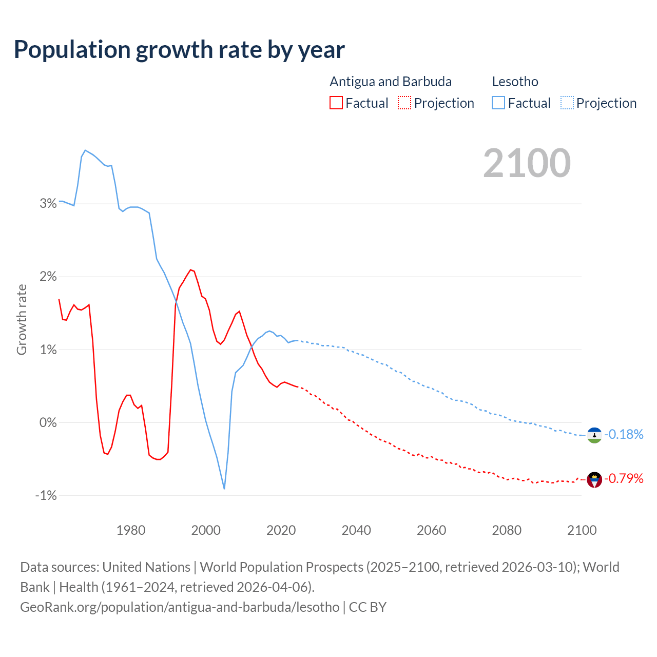 Antigua and Barbuda vs Lesotho: population by year and forecast