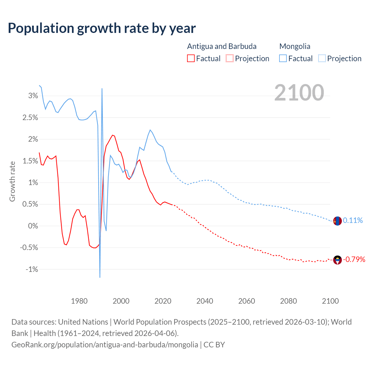 Antigua and Barbuda vs Mongolia: population by year and forecast