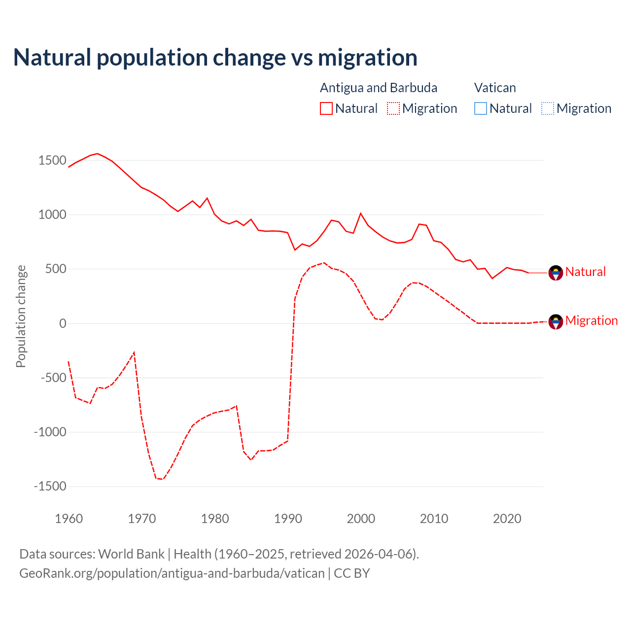 Antigua and Barbuda vs Vatican: population by year and forecast