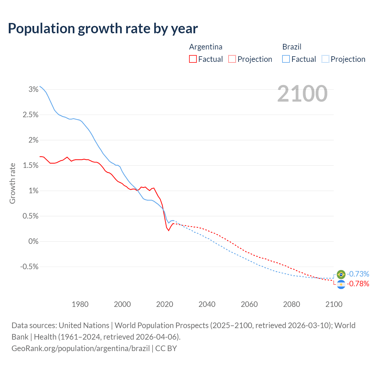 Data sources: World Bank | Health (1960–2024, retrieved 2026-04-06); United Nations | World Population Prospects (1960–2026, retrieved 2026-03-10); U.S. Census Bureau (1960–2025, retrieved 2026-02-08); Central Intelligence Agency (CIA) (2000–2019, retrieved 2026-02-20).