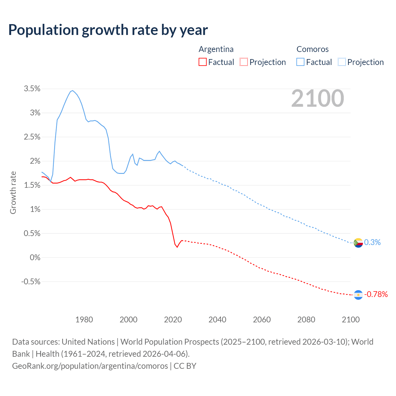 Argentina vs Comoros: population by year and forecast