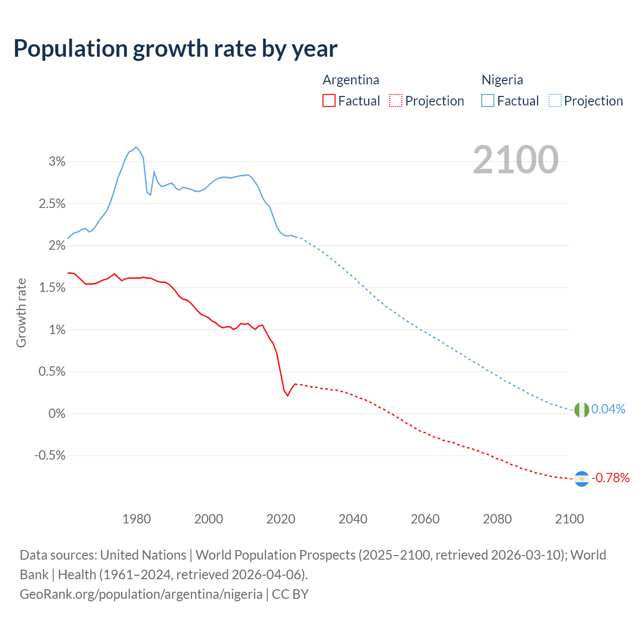 Argentina vs Nigeria: population by year and forecast