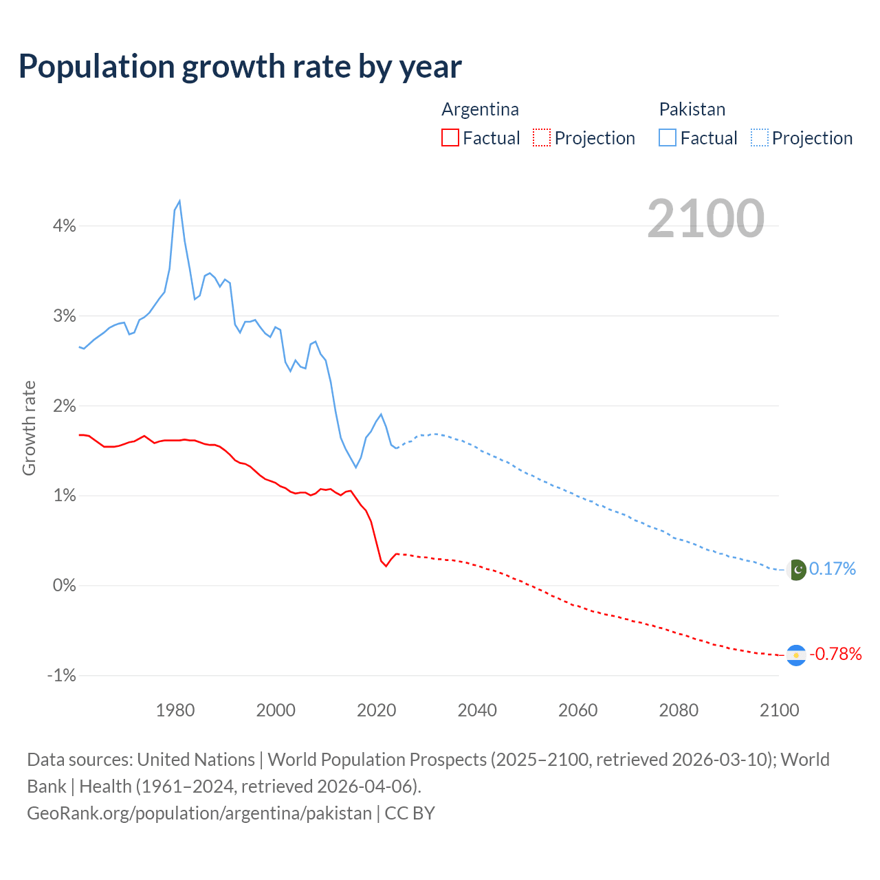 Data sources: World Bank | Health (1960–2024, retrieved 2026-04-06); United Nations | World Population Prospects (1960–2026, retrieved 2026-03-10); U.S. Census Bureau (1960–2025, retrieved 2026-02-08); Central Intelligence Agency (CIA) (2000–2019, retrieved 2026-02-20).