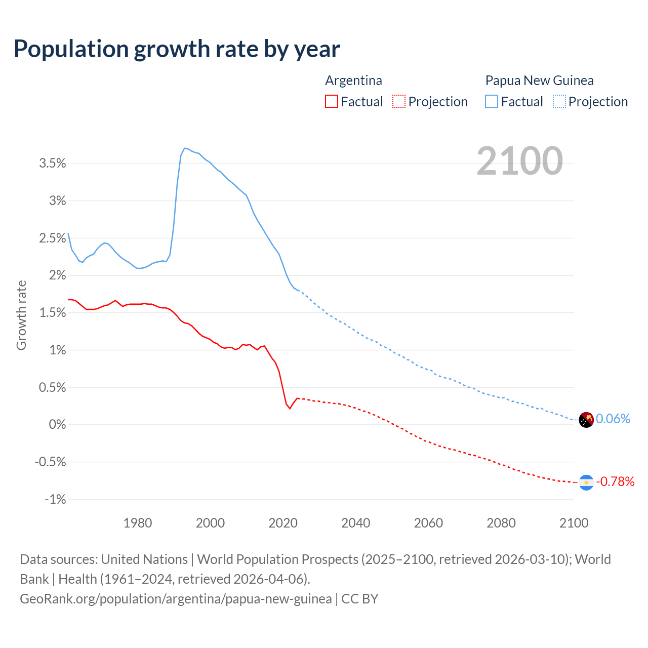 Argentina vs Papua New Guinea: population by year and forecast