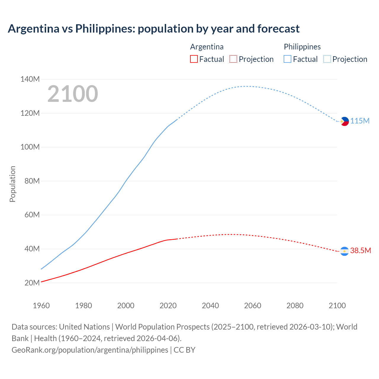 Argentina vs Philippines: population by year and forecast