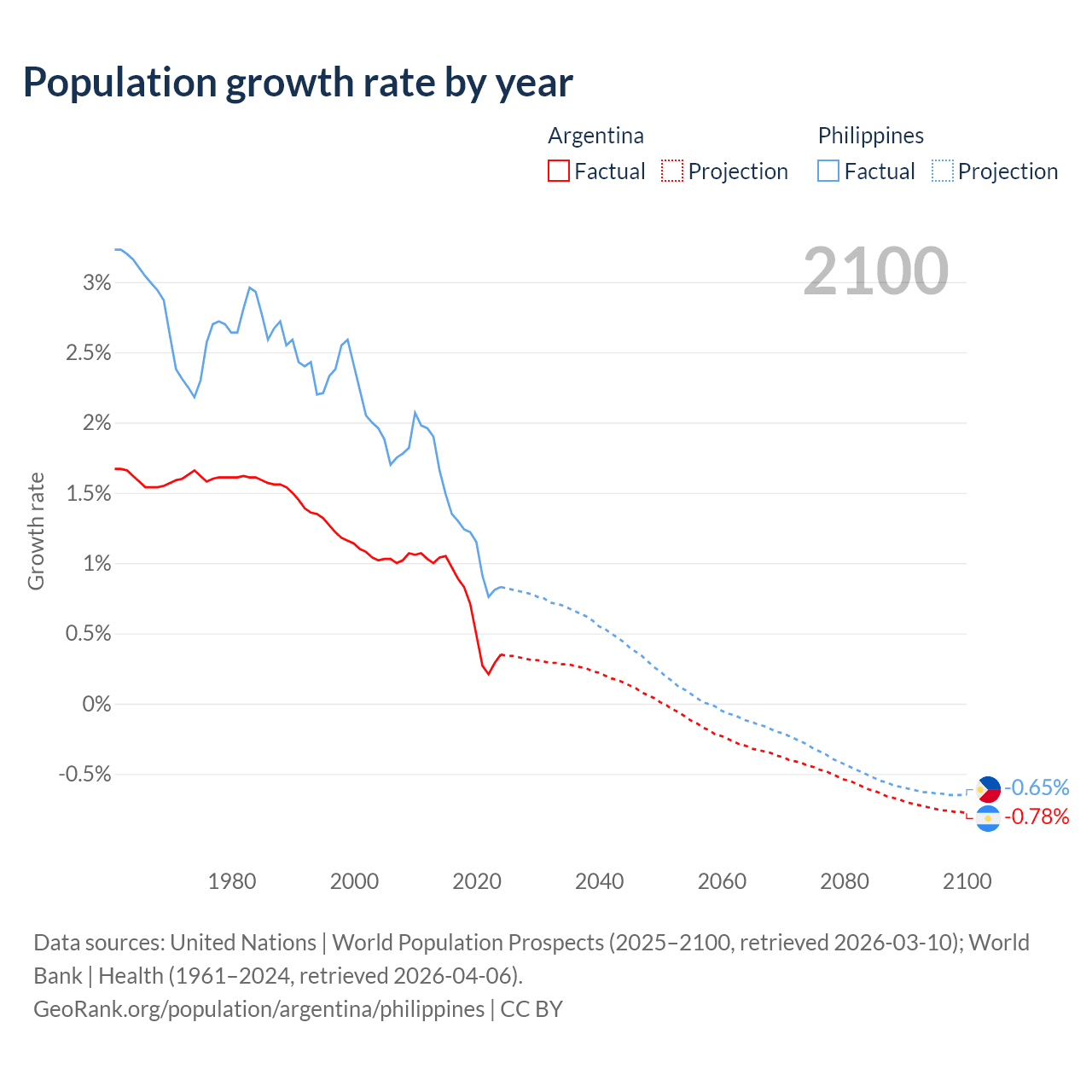 Data sources: World Bank | Health (1960–2024, retrieved 2026-04-06); United Nations | World Population Prospects (1960–2026, retrieved 2026-03-10); U.S. Census Bureau (1960–2025, retrieved 2026-02-08); Central Intelligence Agency (CIA) (2000–2019, retrieved 2026-02-20).
