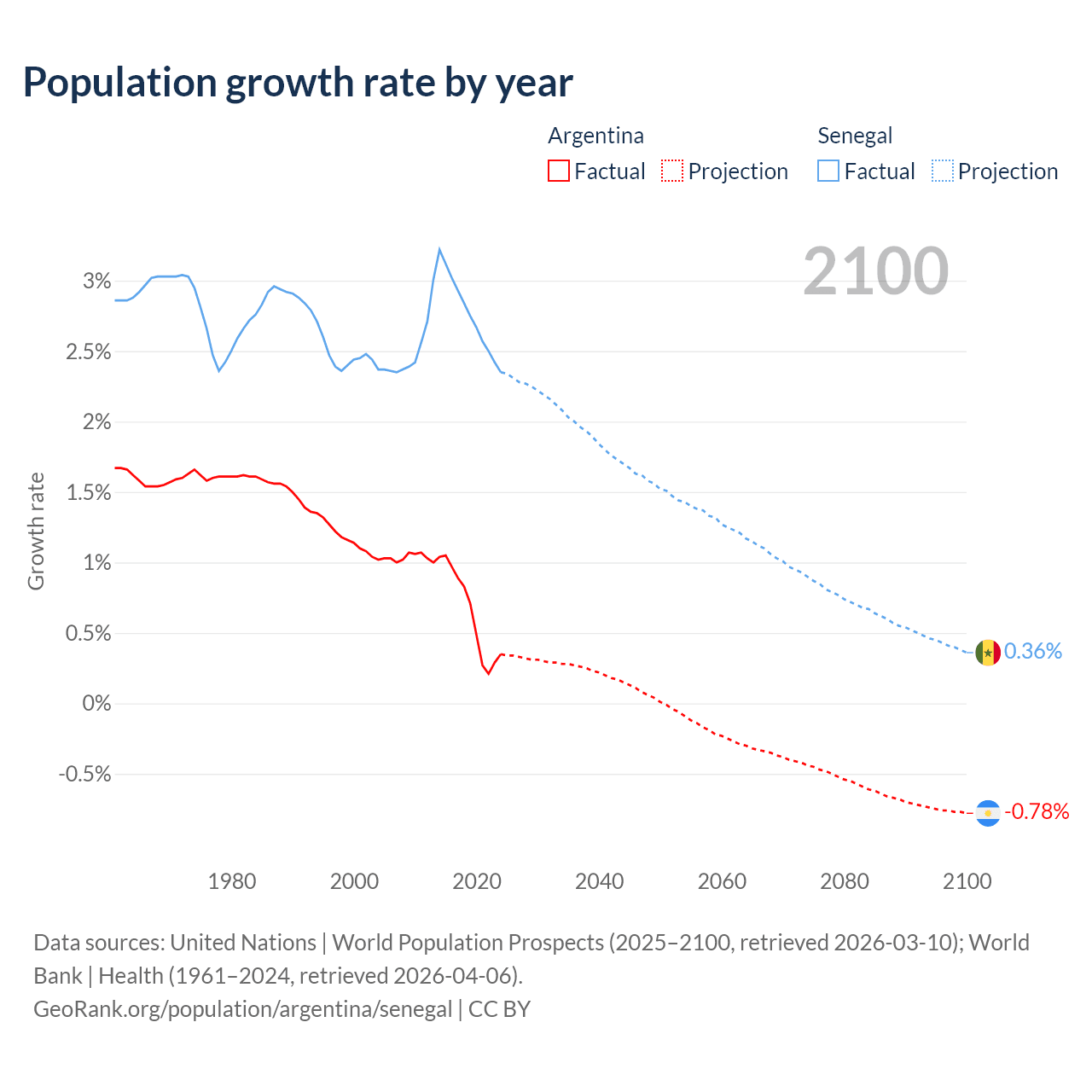 Argentina vs Senegal: population by year and forecast
