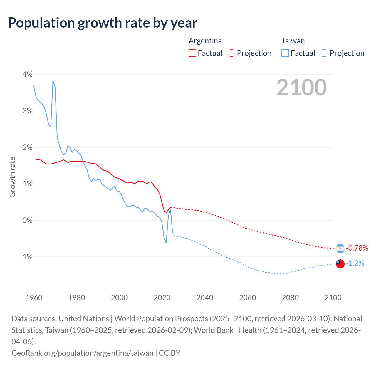 Data sources: World Bank | Health (1960–2024, retrieved 2026-04-06); United Nations | World Population Prospects (1960–2026, retrieved 2026-03-10); U.S. Census Bureau (1960–2025, retrieved 2026-02-08); National Statistics, Taiwan (1960–2025, retrieved 2026-02-09); Central Intelligence Agency (CIA) (2000–2019, retrieved 2026-02-20).