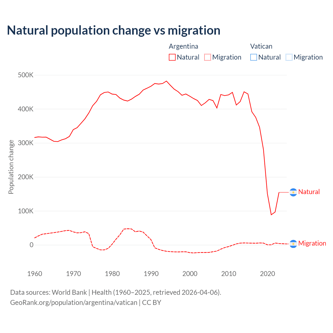 - For the last 10 years, Argentina has had an average growth rate of +0.64% per year vs +1.9% in the Vatican.