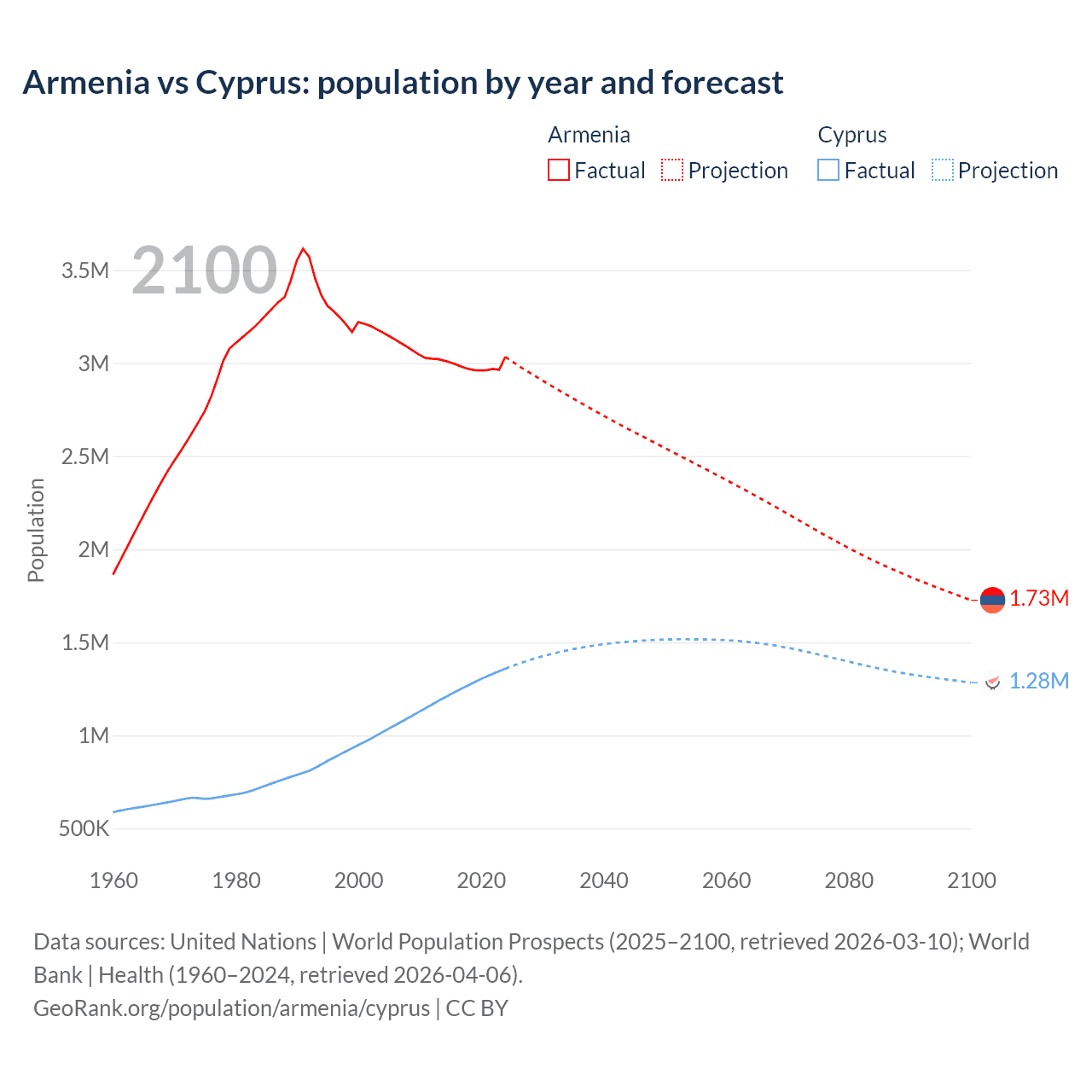 Armenia vs Cyprus: population by year and forecast