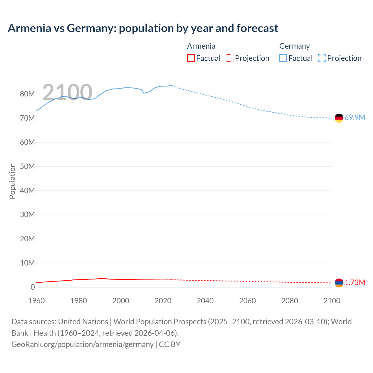 Armenia vs Germany: population by year and forecast