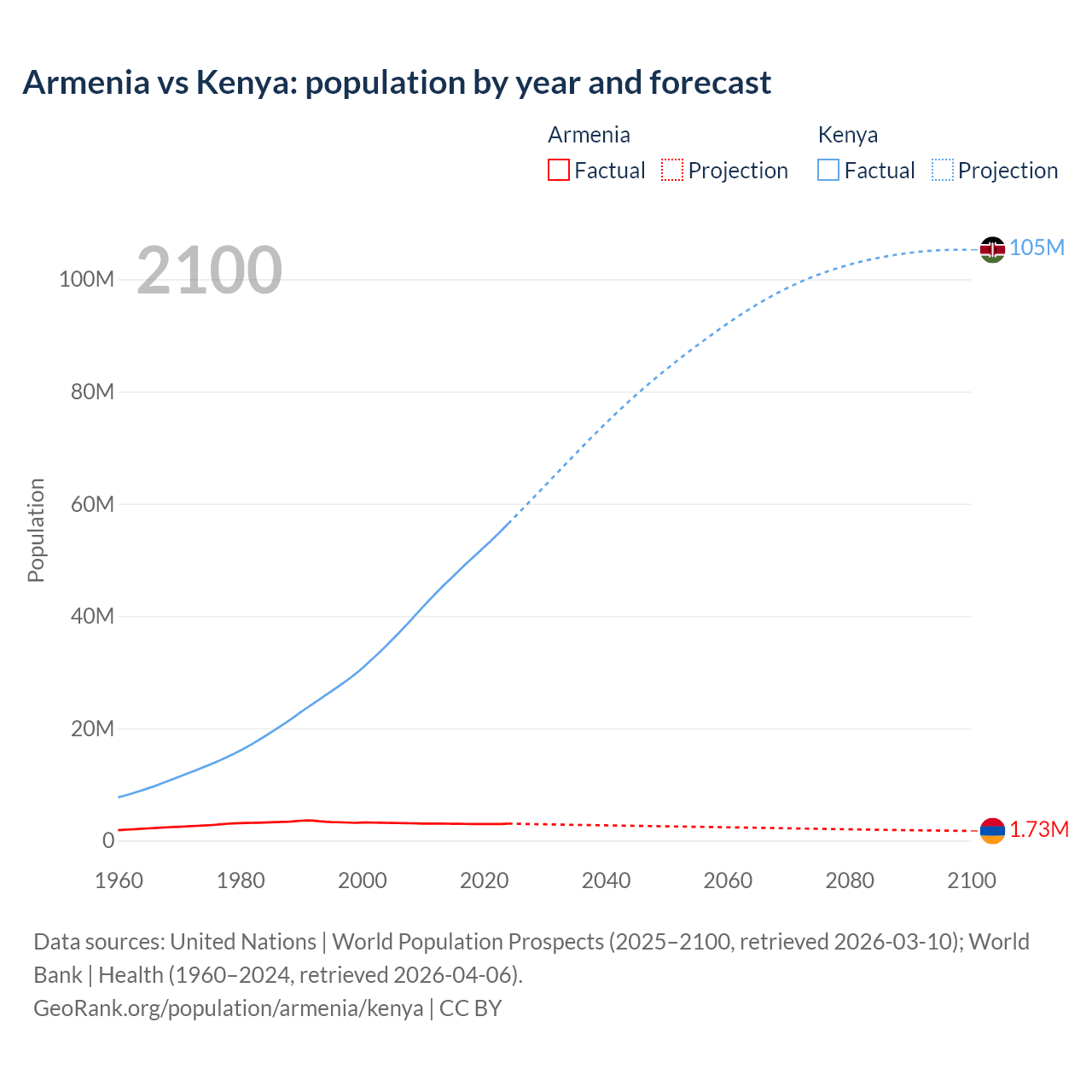Armenia vs Kenya: population by year and forecast