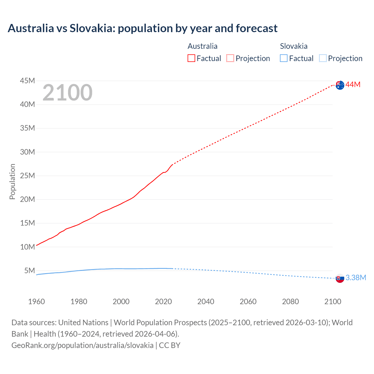 Australia vs Slovakia: population by year and forecast
