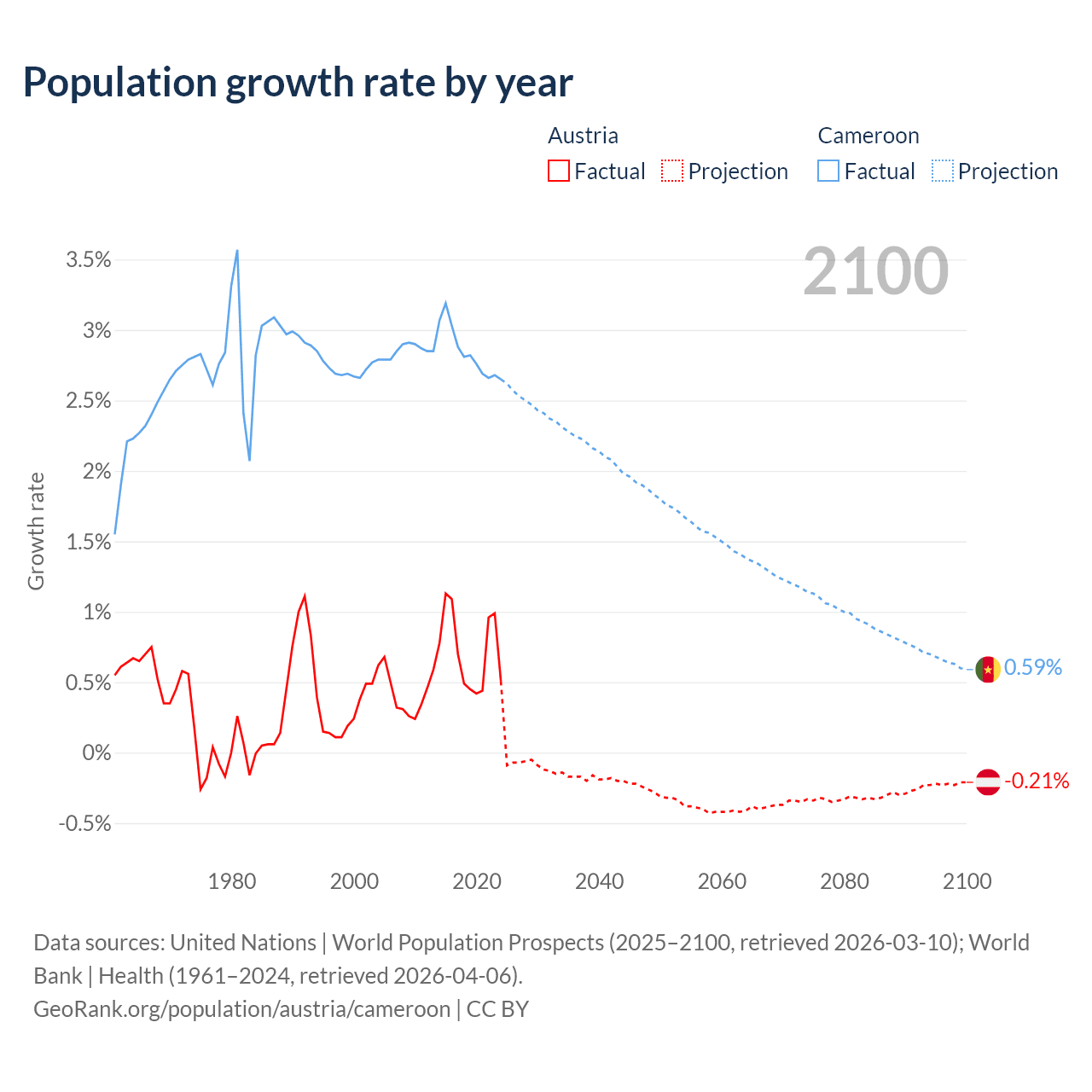 Austria vs Cameroon: population by year and forecast