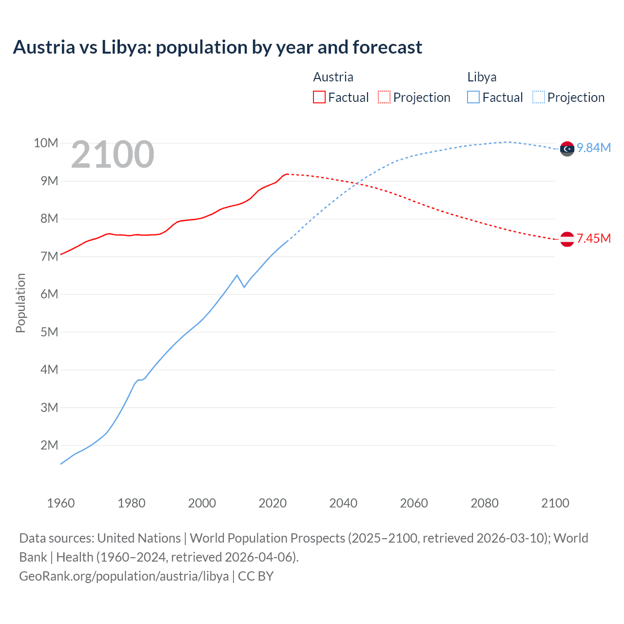 Austria vs Libya: population by year and forecast