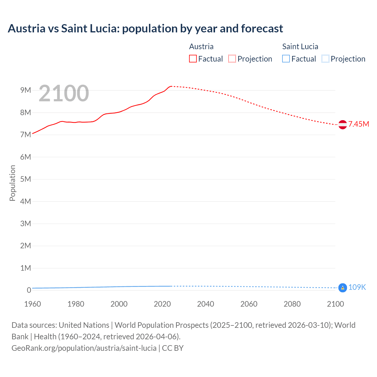 Population differences between Austria and Saint Lucia