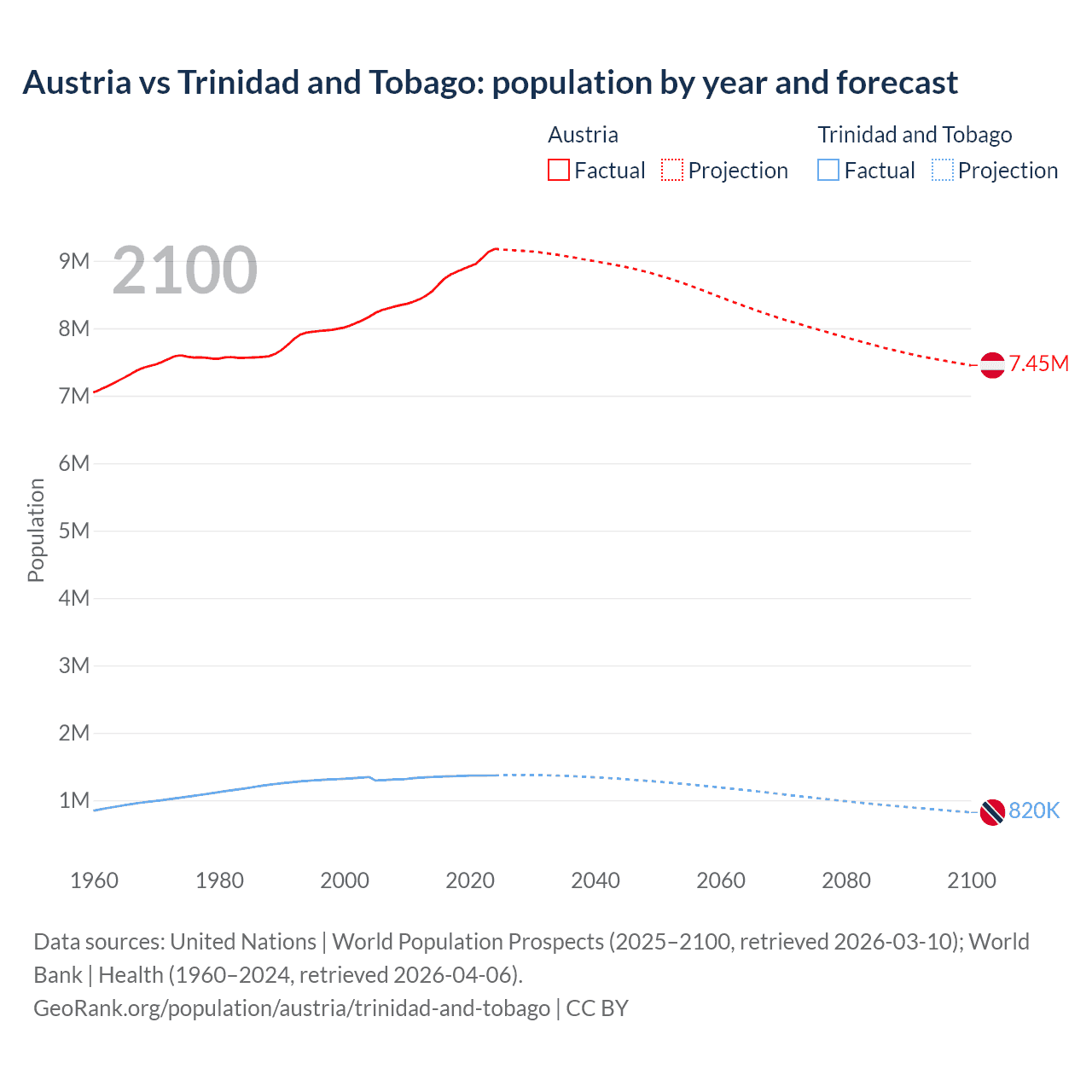 Austria vs Trinidad and Tobago: population by year and forecast