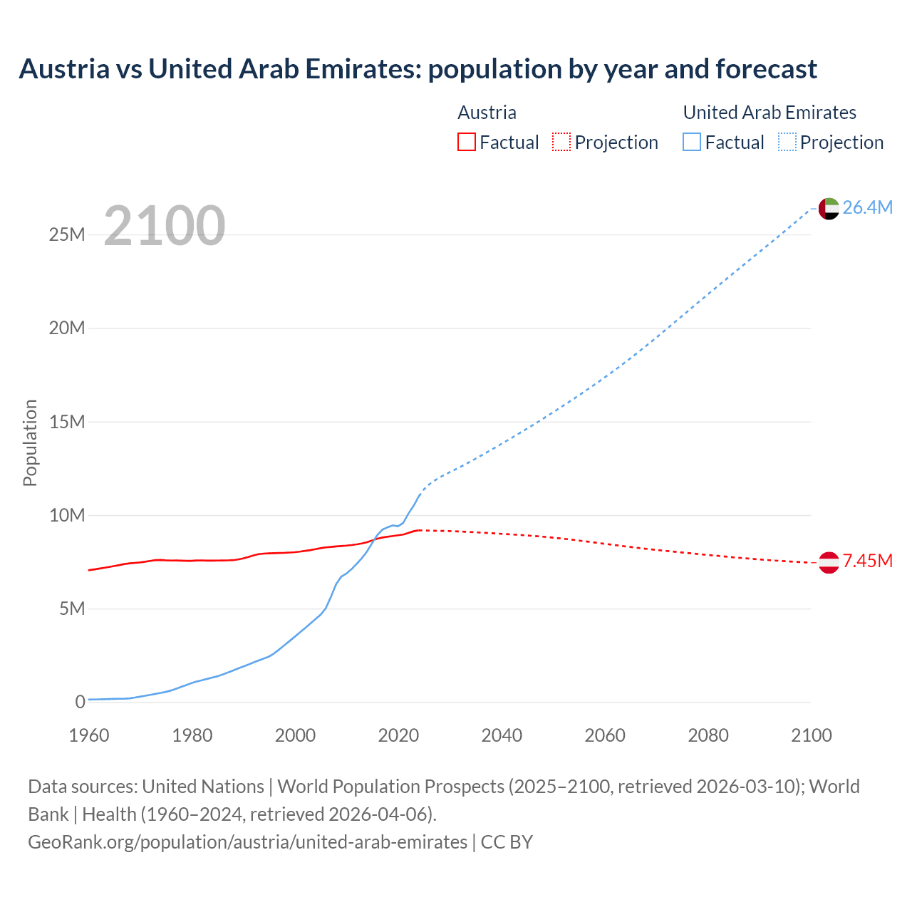 Population differences between Austria and the United Arab Emirates