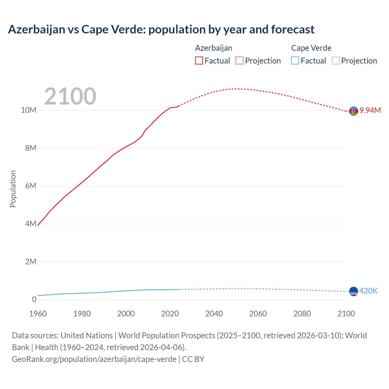 Azerbaijan vs Cape Verde: population by year and forecast
