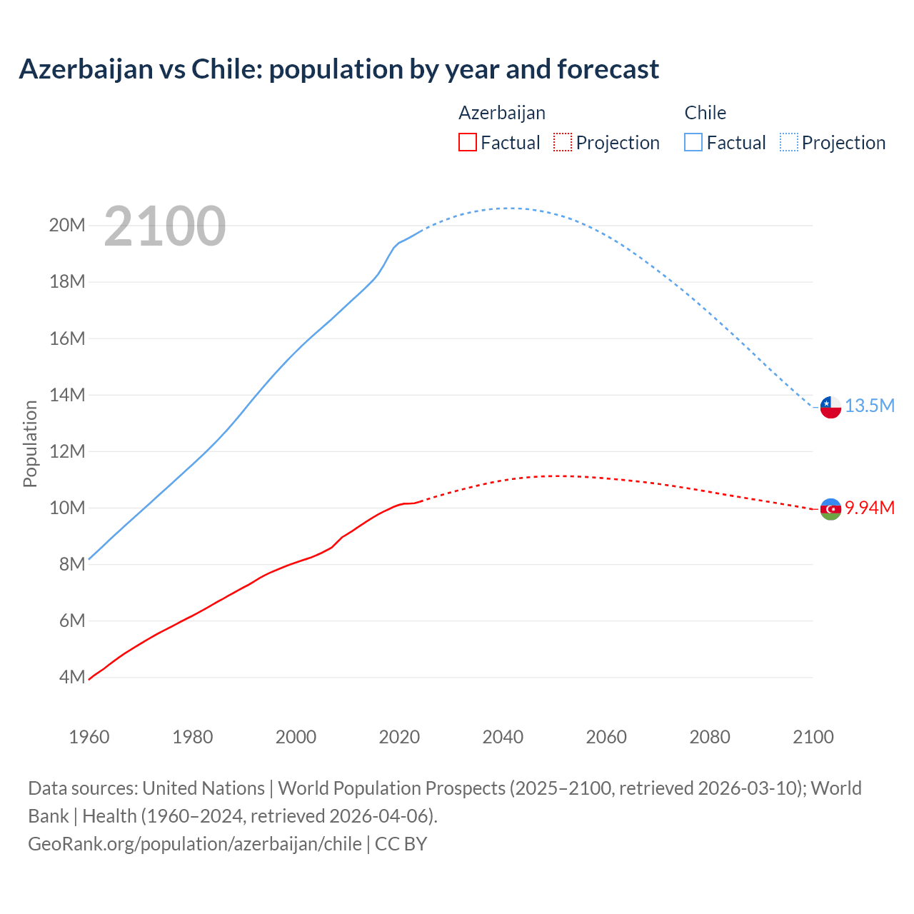 Azerbaijan vs Chile: population by year and forecast