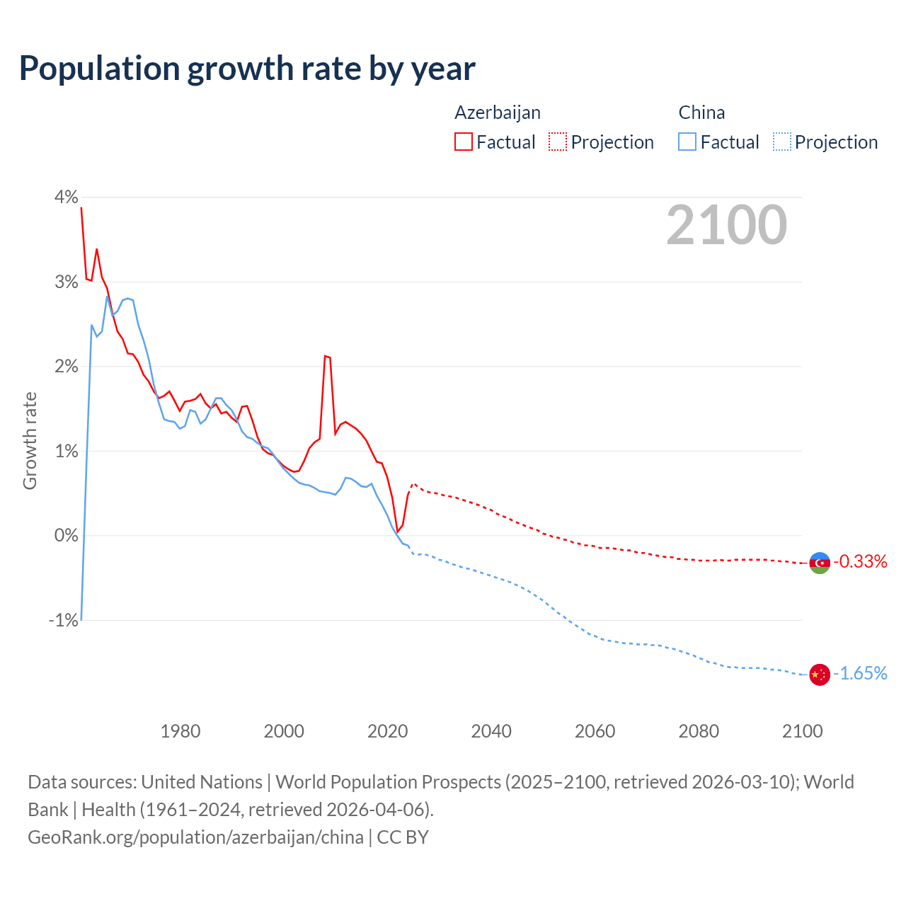 - For the last 10 years, Azerbaijan has had an average growth rate of +0.73% per year vs +0.3% in China.