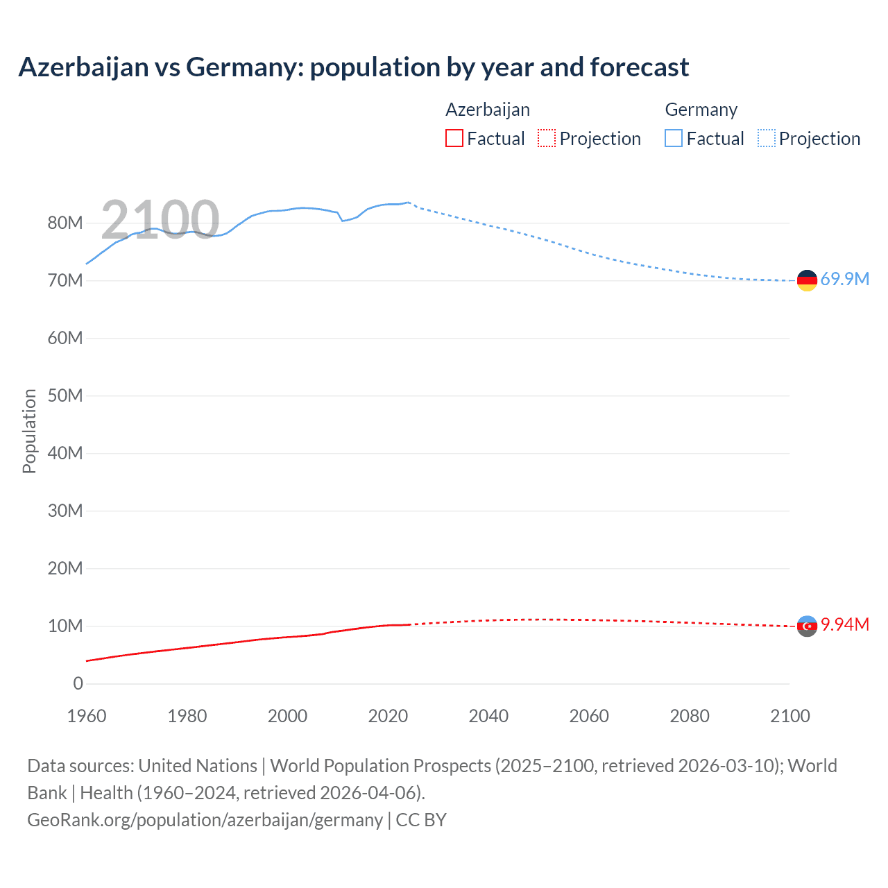 Azerbaijan vs Germany: population by year and forecast