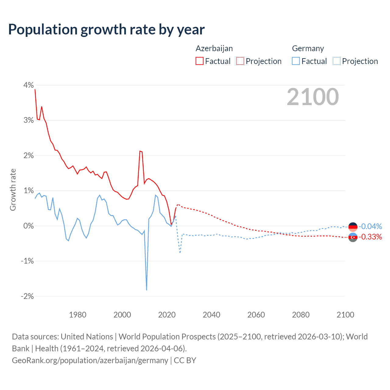 - For the last 10 years, Azerbaijan has had an average growth rate of +0.73% per year vs +0.32% in Germany.