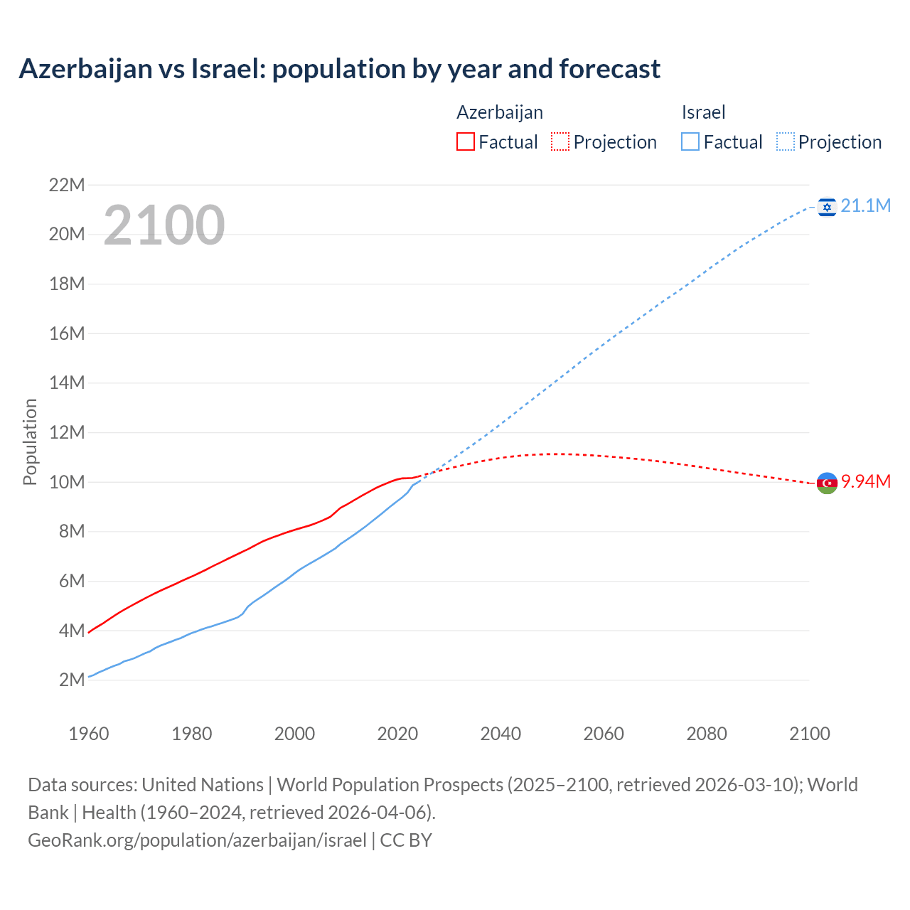 Azerbaijan vs Israel: population by year and forecast