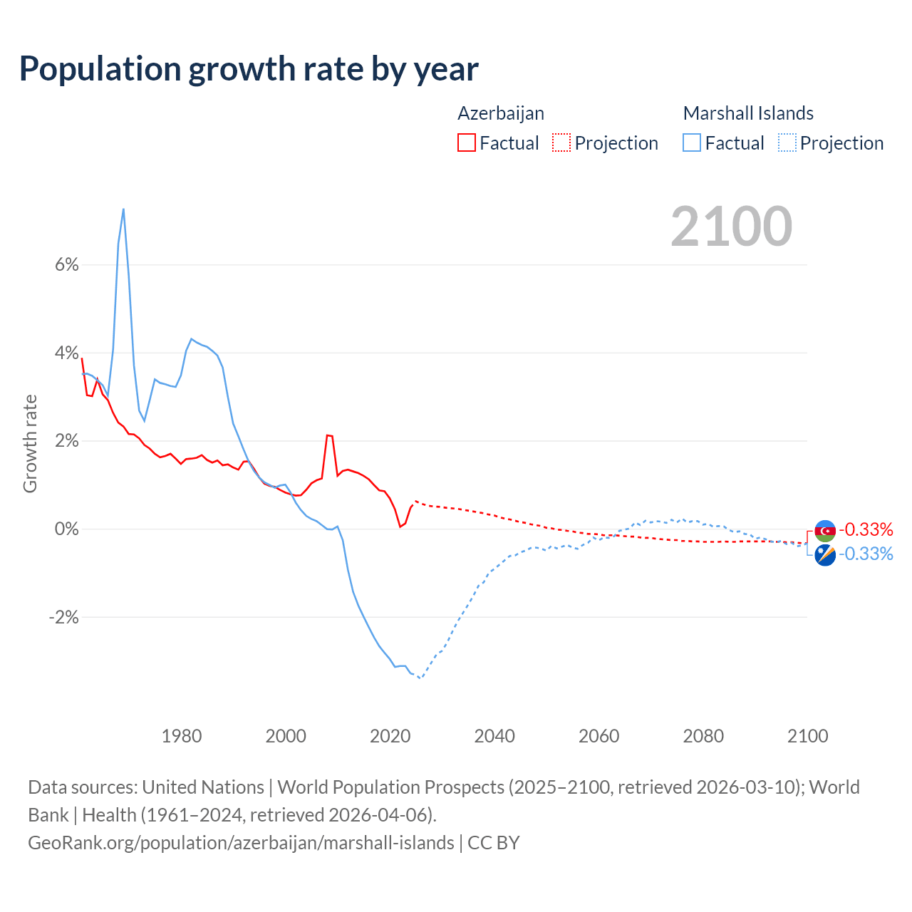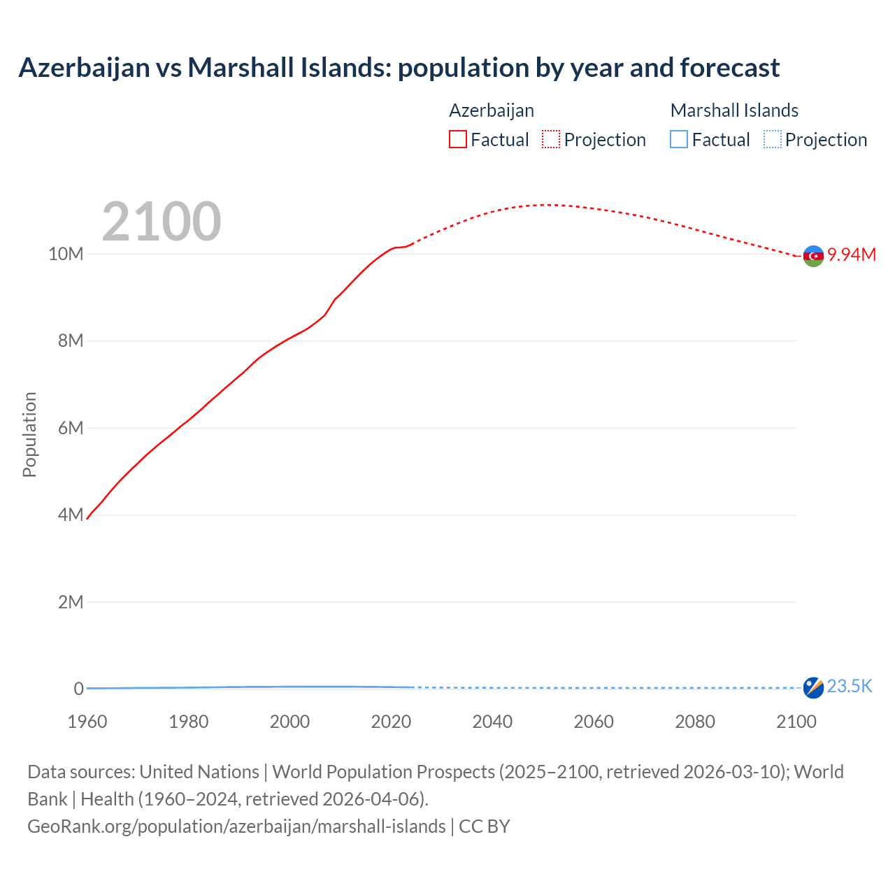 Azerbaijan vs Marshall Islands: population by year and forecast