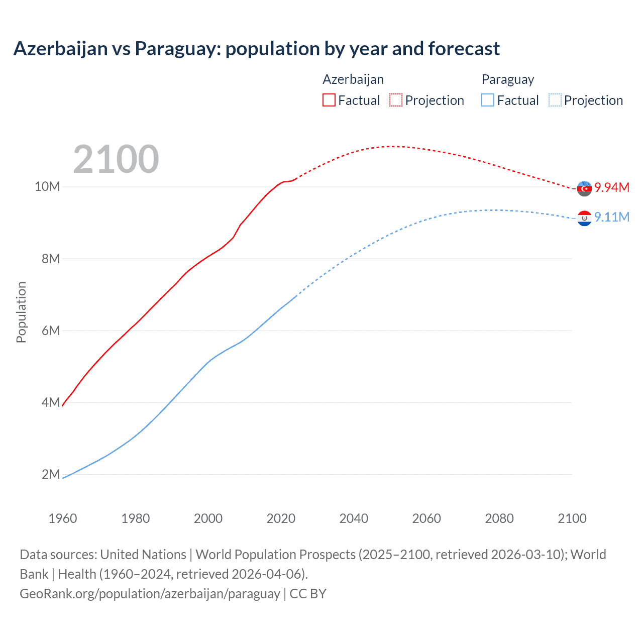 Azerbaijan vs Paraguay: population by year and forecast