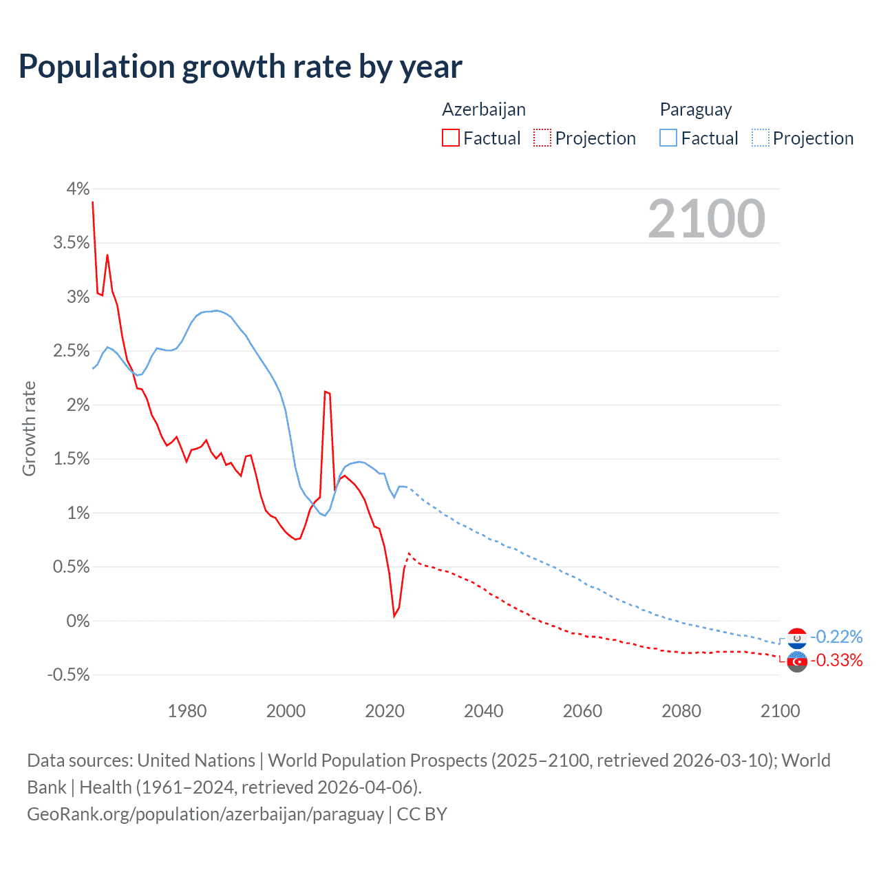 - For the last 10 years, Azerbaijan has had an average growth rate of +0.73% per year vs +1.34% in Paraguay.