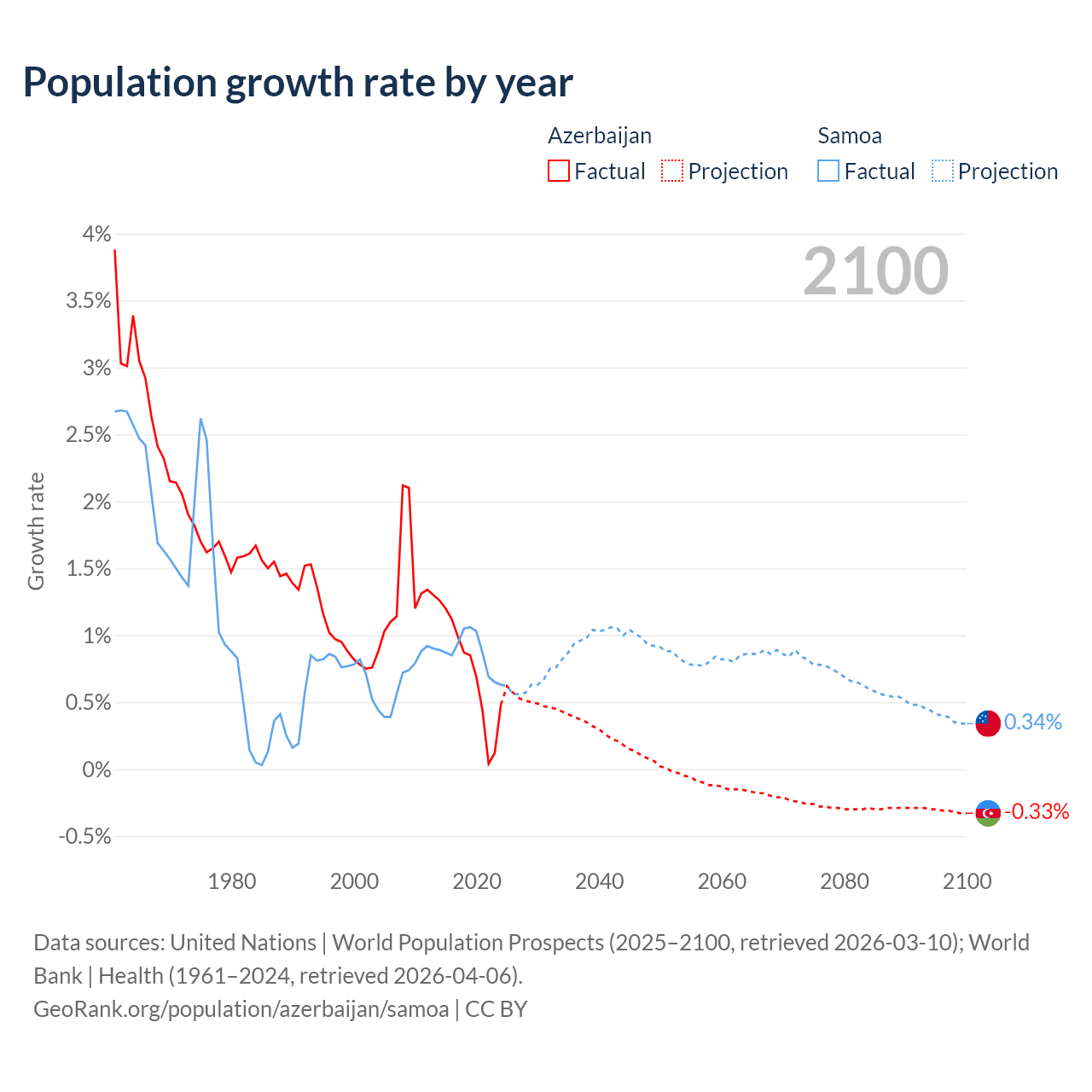 Azerbaijan vs Samoa: population by year and forecast
