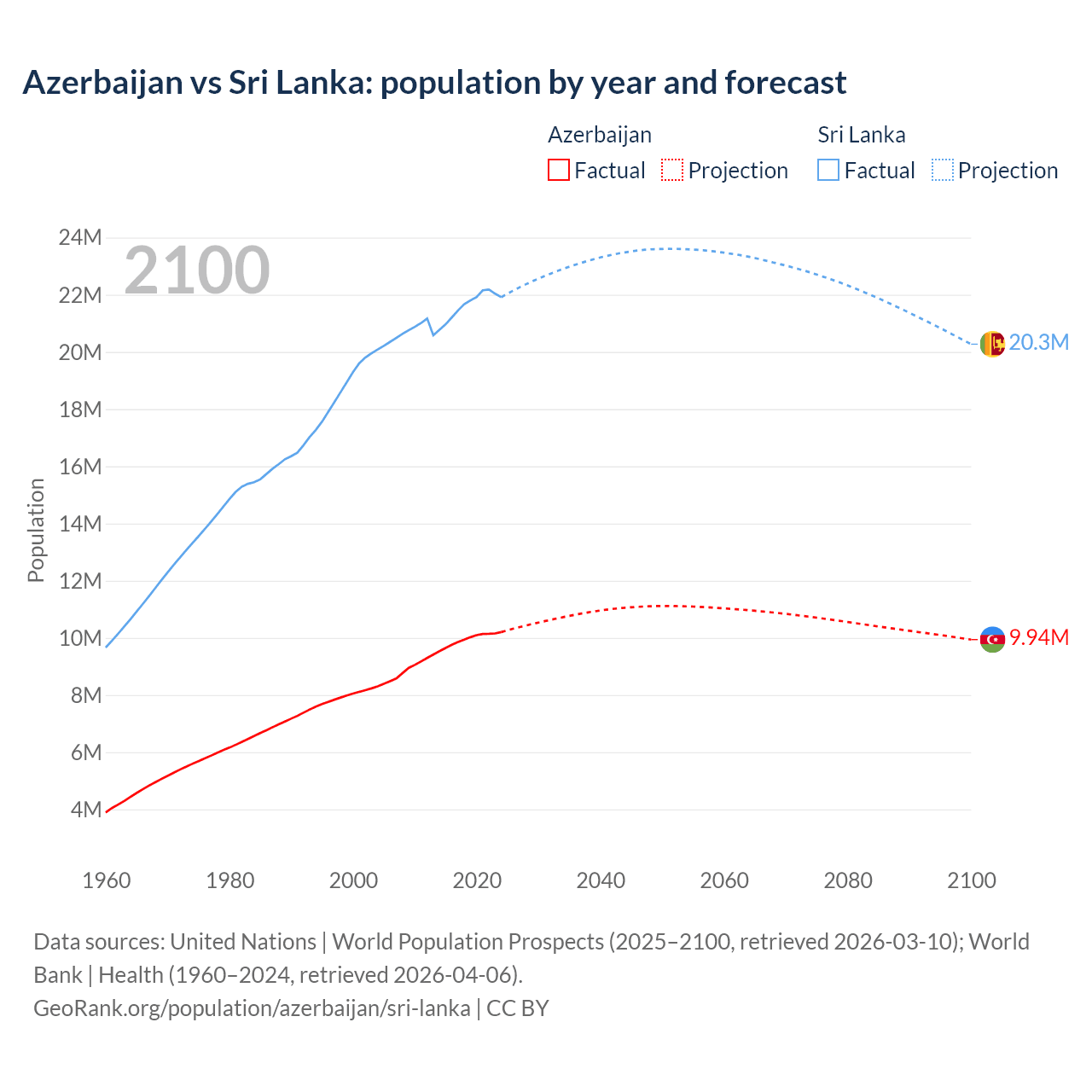 Azerbaijan vs Sri Lanka: population by year and forecast