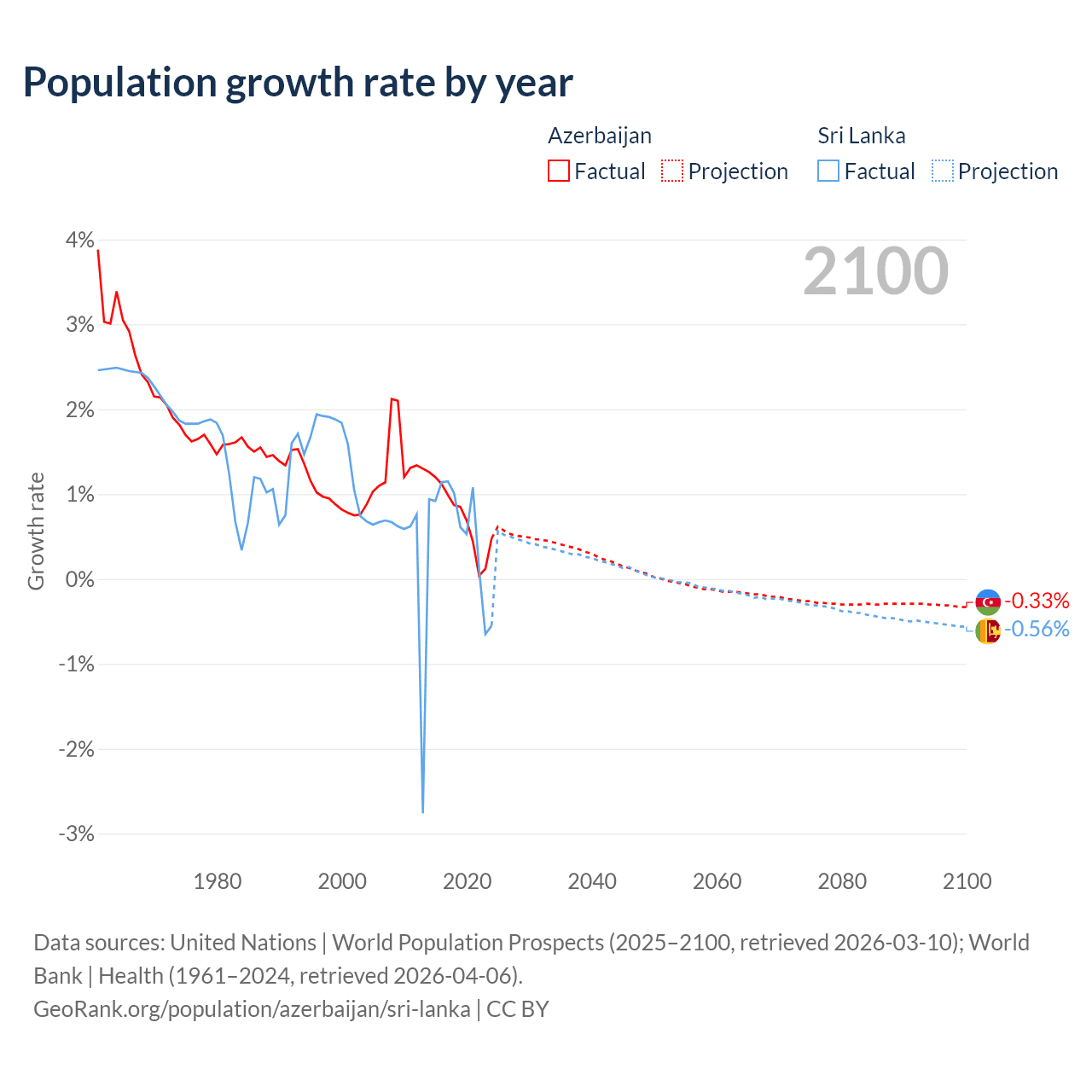- For the last 10 years, Azerbaijan has had an average growth rate of +0.73% per year vs +0.57% in Sri Lanka.