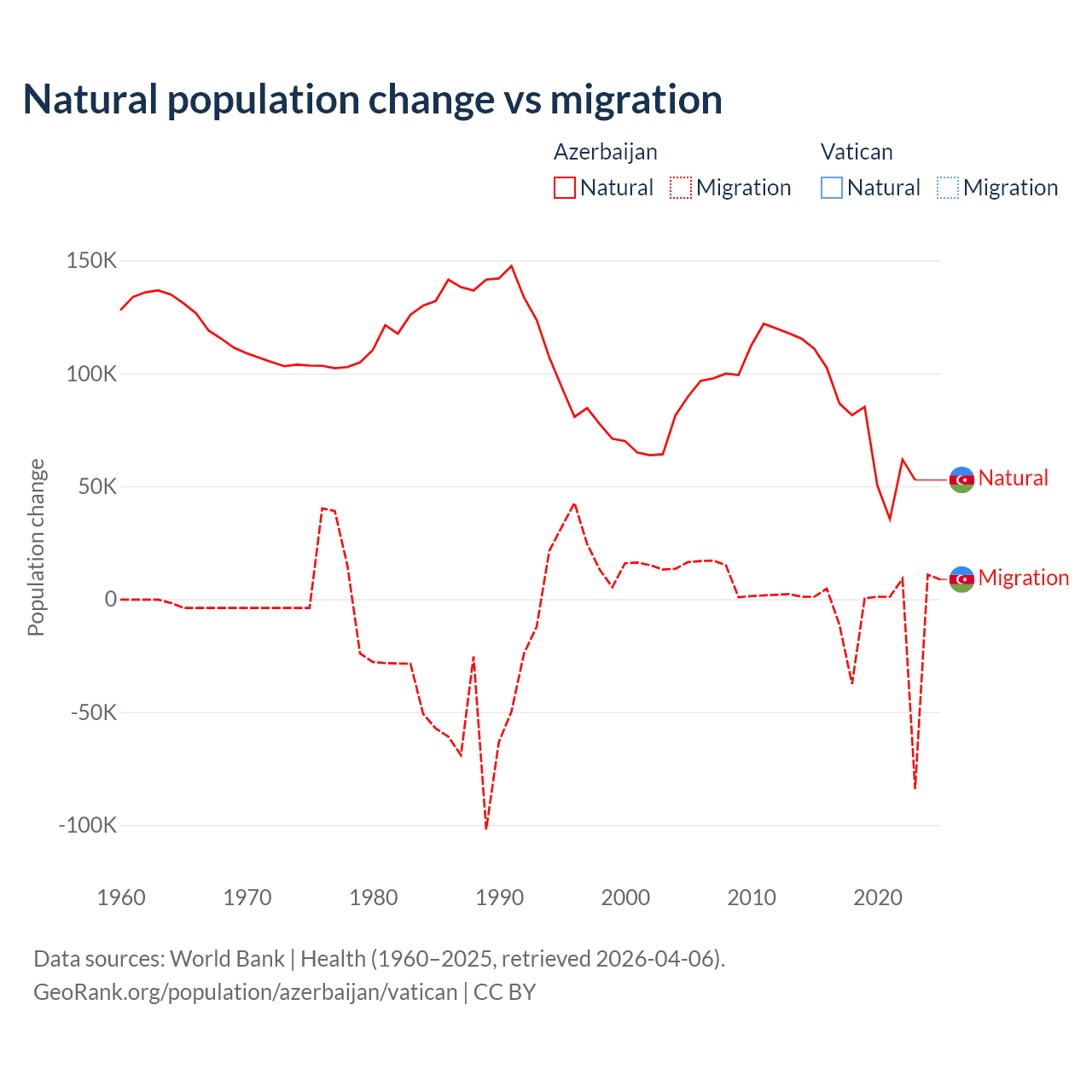 Azerbaijan vs Vatican: population by year and forecast