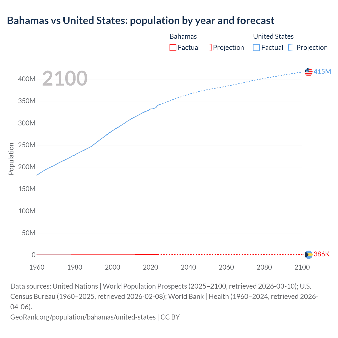 Population differences between the Bahamas and the United States