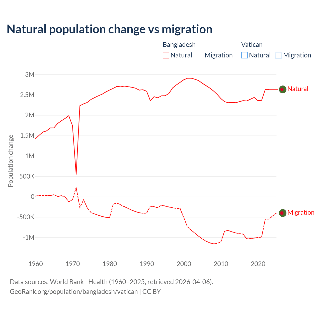 - For the last 10 years, Bangladesh has had an average growth rate of +0.94% per year vs +1.9% in the Vatican.