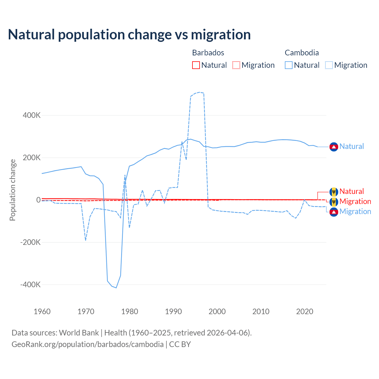 Population differences between Barbados and Cambodia